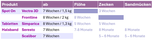- wirksame Prophylaxe Maßnahmen (beim Tierarzt erhältlich)